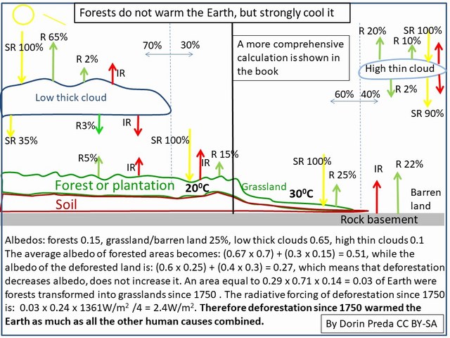 Albedo should only be used when considering all relevant parameters, otherwise it would appear that vegetation would warm the Earth, while this study demonstrates that trees are the most powerful coolers.